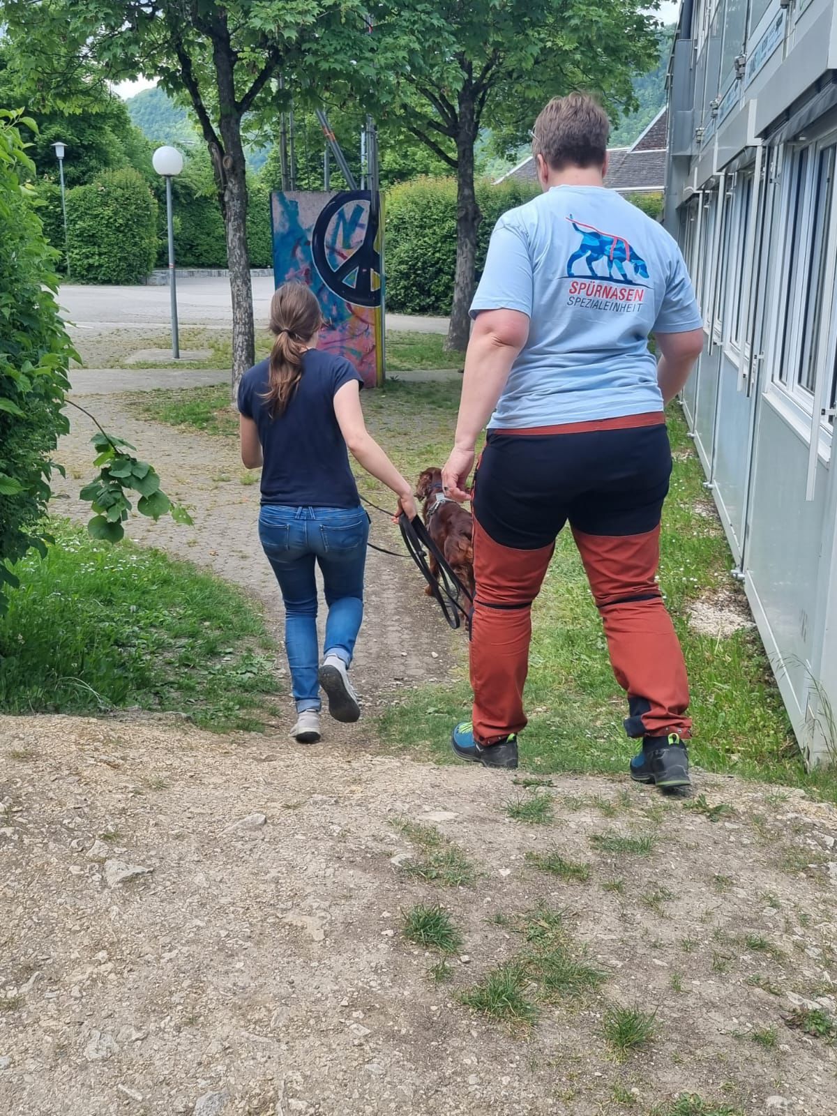 Um die noch unerfahrenen Hunde nicht mit zu vielen Spuren zu verwirren wurde immer ein neuer Weg für den nächsten Trail verwendet. So arbeiteten wir uns Stück für Stück durch das Wohngebiet.